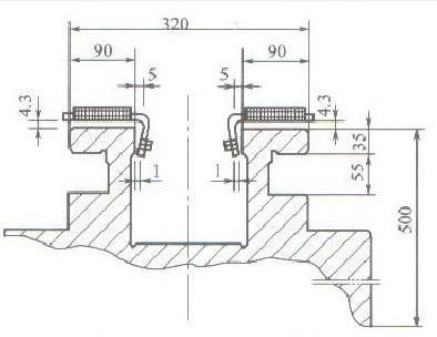 a.感應(yīng)器及與導(dǎo)軌的間隙如圖2-34所示,為使淬火導(dǎo)軌表面加熱及溫度均勻,分別在感應(yīng)器預(yù)熱圈和加熱圈粘相同數(shù)量的導(dǎo)磁體。為避免導(dǎo)軌棱角處燒損,應(yīng)將此處鐵屑、油污等清理干凈,并去毛刺,將棱角處適當(dāng)?shù)光g。b.為減少淬火后的導(dǎo)軌下凹變形,上導(dǎo)軌面淬火前加工成中間上凸0.20~0.25mm