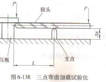 綜上所述,上述過熱區(qū)分法均不適于生產(chǎn)應(yīng)用。經(jīng)生產(chǎn)試驗(yàn)和實(shí)踐應(yīng)用,推出一種新式檢驗(yàn)區(qū)分高速鋼鉆頭過熱區(qū)分法——彈性變形區(qū)分法。彈性變形區(qū)分法,即對(duì)處理后的鉆頭進(jìn)行三點(diǎn)彎曲加載荷試驗(yàn),使其發(fā)生彈性變形,根據(jù)鉆頭彈性變形量大小區(qū)分其是否過熱的方法。在載荷作用下,當(dāng)彈性變形量約達(dá)△X/2時(shí)出現(xiàn)脆斷者,表明該鉆頭為過熱鉆頭。三點(diǎn)彎曲加載荷試驗(yàn)法如圖6-138所示。該試驗(yàn)方法經(jīng)金相法檢驗(yàn),合格鉆頭檢驗(yàn)合格率達(dá)99.5%,過熱鉆頭檢驗(yàn)合格率達(dá)99%。該方法適于生產(chǎn)中批量檢驗(yàn),每小時(shí)可區(qū)分1000 - 1500 支鉆頭。